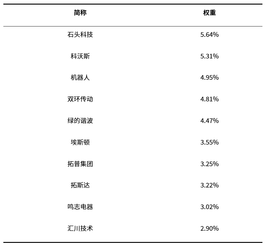 例如国证机器人产业指数(980022.CNI),指数选取机器人产业链中50家龙头企业,前十大成份股主要包括双环传动(精密齿轮供应商)、绿的谐波(谐波减速器核心供应商)、拓普集团(线性/旋转执行器供应商)、鸣志电器(空心杯电机供应商)、汇川技术(伺服系统龙头)等人形机器人相关公司,机器人成分含量较高,且更聚焦上游核心零部件。
